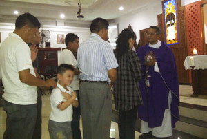 THE BEGINING OF LENT SEASON of 2014 is marked by the Ash Wednesday service at the Bible Centre, March 5, 2014, which raises the topic of The Virtue of Fasting and Abstinence for Christians. The small church of Bible Centre is packed with faithful, joining the service, presided by the Chaplain of the International Pastoral Community of Batam, Fr. Aurelius Pati Soge, SVD. Characteristically international community, many people from different nationalities, mainly foreign workers in Batam, present at the service. The virtue of fasting and abstinence In his homily, Fr. Pati Soge emphasises the necesity to understand the virtue of fasting and abstinence that are commonly practiced within the Catholic Church. It is important to avoid these practices as nothing more but ancient tradition, as it has deeper meaning and values for spiritual growth of the faithful. First of all, fasting and abstinence are not the price a Catholic has to pay for his or her sinfulness, instead it is a spiritual self-discipline that one freely decide to exercise in order to maintain his worthiness before God. |