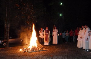 (19/4/2014) "This is the light of Christ!", acclaimed I after lighting the Paschal Candle. "Thanks be to God", answered the congregation. And the procession of the light started. Singing the exultation in candle light is a great spiritual experience. It even pictured some sort of romantic and magical gathering, as every one was with his or her own lighted candle, meditating in silence. The glow of candles' lights seemed to form a spider web around the greater Paschal Candle that symbolized the light of Christ. We share the same light of Christ, we should keep the light within our family and commit ourselves to keep it alive until the return of the True Light, Jesus Christ. For years I have sung the exultation, including in English for the last couple of years, yet it remains a touching part that could bring one into tears. I recall my first time singing the exultation, back in 1983, when I was still in second grade of St. Dominic Minor Seminary of Hokeng. Now I realize, it is a privilege for me to be able to officially sing this glorious part of the Easter Vigil liturgy. Having this privilege, a role that is exclusively assigned to the ordained deacon or priest, isn't it a great source of joy and happiness?