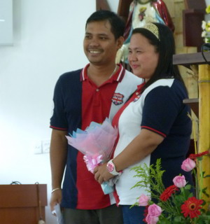 (18/4/2014) While the rest of the Indonesian people enjoyed their long weekend holiday, for Christian it is the day of deep meditation and reflection on the suffering and death of Jesus Christ. The day started with morning out door way of cross around the Bible Centre, presided by Fr. Angelo, started at 9 am. It is a unique way of cross. Fourteen couples took chance in turn to lead the meditation at every station. The husband carried the cross on his shoulder while the wife led the prayer. I believe the meaning of the cross would penetrate the hearts of every family member and significantly change their life. At 1 pm, again the congregation gathered together in the chapel for meditation on the seven last words of Jesus Christ from his cross on the top of Golgotha. A seven branch candle stick was put in the middle with seven candles on them, all lighted and extinguished in turn at the end of one phase of meditation: (1) Father, forgive them as they do not know what they are doing; (2) Today you will be with me in paradise; (3) Woman, here is your son; and this is your mother; (4) My God, my God! Why have you forsaken me; (5) I thirst; (6) It is finished; and (7) Father, into your hand I commit my spirit! Praying, meditating, unifying oneself with Christ who suffered on the cross in agony, is eventually a spiritual struggle that everyone should do. We have received so many blessings from the Lord, is it too heavy to ask just for once to suffer with him? At 3 pm, the liturgy of the Good Friday took place. Assisted by Fr. Aurelius, Fr. Angelo conducted it well. But, look! This small church was so crowded. No surprise, after the liturgy, many came to me, saying, "Father, why did you not provide more crosses, so the line was not that long!" Understood! Just on cross for more than four hundred people was not a very pleasant one. But again, the atmosphere of being touched by the suffering of Jesus was very strong, an all were unified in prayer and sacrifice.