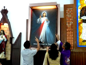 At the Bible Centre, Sukajadi, Batam, the celebration is marked by the procession of the image of the Divine Mercy, at the beginning of the Holy Mass. An Indian couple, Mr. and Mrs. Austin Morera bring the image and enthrone it at the place newly installed at the right hand side of the altar, while the congregation sings the hymn which is taken from the prayer of Divine Mercy, "Eternal Father I offer you, the body and blood, soul and divinity of your dearly beloved son, our Lord Jesus Christ, in atonement of our sins and of the whole world. For the sake of his sorrowful passion, have mercy on us and those of the whole world." While the Year of Mercy does not focus on the devotion of the Divine Mercy, but the mercy of God as a whole, the image is chosen to represent the Centre's celebration, due to the practice of this particular devotion for International Pastoral Community. Every first Friday, the chaplet of mercy is recited before the mass. Meanwhile, three talks are always conducted before the Divine Mercy Day, Sunday after Easter. As it is well known for many of community members, the procession will always brings some meaning for private and communal spiritual nourishment. |
