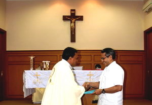 P. Aurelius Pati Soge menyerahkan hasil kapitel kepada Provinsial SVD Jawa, P. Yoseph Jaga Dawan |